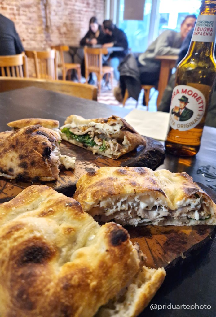 Italianos que preparam a comida incrivelmente deliciosa, abrem a massa do pão na hora e colocam para assar no forno a lenha, perfeito! Pedimos a porchetta da casa – sem palavras!