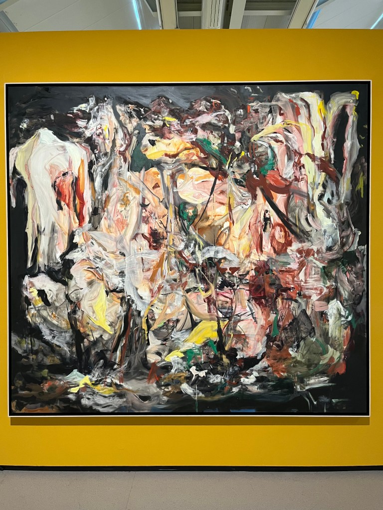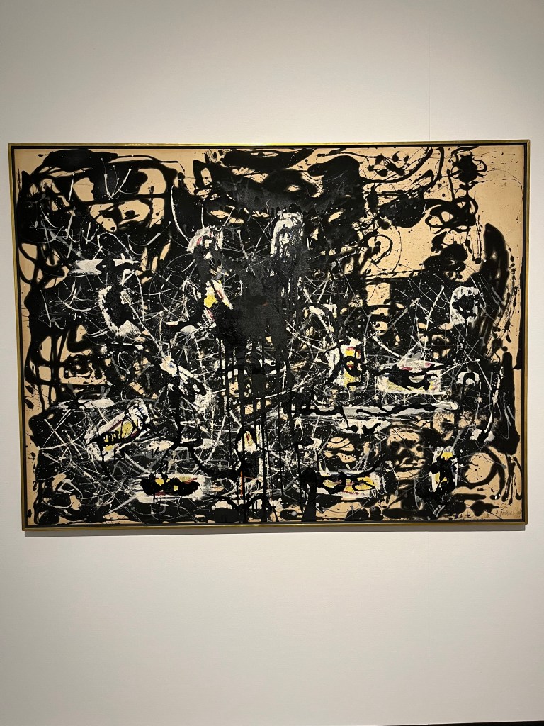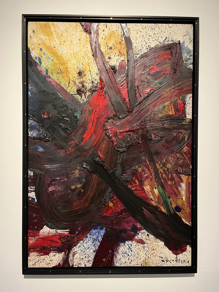 Conheci vários artistas novos que gostei bastante, entre eles o Kazuo Shiraga, um artista japonês que, assim como Pollock – um dos meus favoritos -, pintava com a tela no chão. Imagino que seja uma espécie de dança todo esse processo, com o pincel sendo uma extensão do corpo.